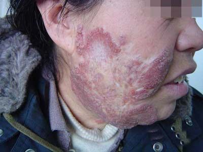 约占皮肤结核的40 ,感染过结核分枝杆菌的患者经皮肤和(或)黏膜接种。大多由于外源性结核分枝杆菌接种到皮肤易受外伤部位所致,如手指、手背、臀部等暴露部位。皮损开始为一个小的、坚实的疣状丘疹,逐渐向周围扩大,形成坚实的红褐色疣状斑块。皮损中央可出现脓液及角化性皮屑,轻压有波动感。数年后斑块可自愈。TST阳性。