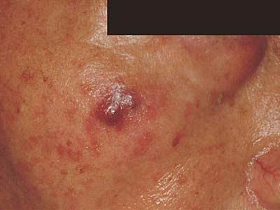 (四)皮脂腺瘤 损害为多发性的五疹或结节,柔软而孤立,发生于面中央部位,无自觉症状,患者多伴有智力不足及癫痫。病理改变为皮脂腺增生肥大,血管扩张,结缔组织增生,无结核样浸润。