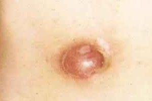 2、损害初起时,仅在脐部有微痛微肿现象,渐渐肿大如瓜,皮色为红色或白色,触之有疼痛感。如果脐部出现化脓,患者可伴发热、口干等全身症状。