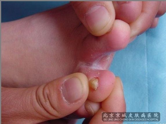 但常由于磨擦和搔抓,这一发展过程不如体癣那幺典型。如病发于指趾间,可引起浸渍和靡烂;慢性病例可引起皮肤增厚,角化过度,入冬则发生皲裂。临床上可根据皮损分为水疱型、丘疹鳞屑型,糜烂型、角化过度型等。一般足癣常发生于双侧,而手癣常局限于单侧。