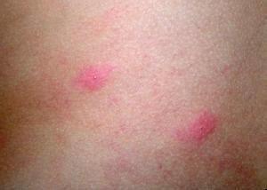 **、生活中被螨虫咬伤后可以发现皮肤上出现红色皮疹,主要表现为红色丘疹、丘疱疹,严重时会出现水疱或丘疹性荨麻疹样损害,对皮肤造成的损伤也是很大的,患者有时可以在皮损的中央位置看到虫咬的瘀点。