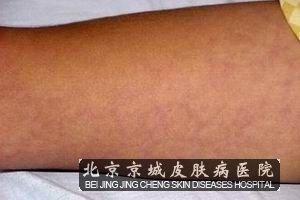即先天性毛细血管壁薄弱,以致不能收缩。本病多自出生时或生后不久发生于面部、颈部和枕后、头皮部。可单侧,散发,亦可双侧,多发。较初皮肤或粘膜上有一个大小不一,淡红色或暗红,或紫红色皮损,自针尖大小至一个肢体或半侧躯干,哭闹后颜色加深,界限清楚,形状各异,不高出皮肤,局部则 较高,压迫后,部分或全部退色,表面光滑。随年龄增长,如儿童或青壮年有可能在其上有症状或结节状损害,多数发生在小腿和足部,可表现为疼痛性紫蓝色结节和斑块,尚可破溃。