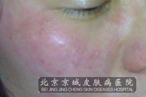 北京京城皮肤医院指出,面部的红血丝症状图片: