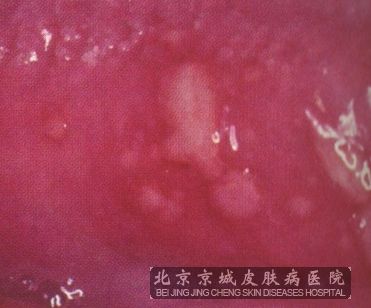 一、轻型口疮 病发初期出现针尖样大小或稍大的充血区,呈圆形或椭圆形,边界清晰的浅小溃疡。中心微凹陷,表面覆有一层淡黄色假膜,溃疡周围粘膜充血呈红晕状,其底扪之不硬。溃疡数目一般为2~3个左右。溃疡形成后有较剧烈的烧灼痛,尤以舌尖处明显。在接触有刺激性的食物时更甚。一般无全身症状。