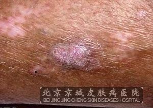 4.皮损症状:其损害表现为针帽至米粒大的丘疹,可逐渐增大成为绿豆至黄豆大、半球形、坚实隆起皮肤表面的丘疹或是结节,多呈褐色或灰褐色。继之还可能会因为搔抓过度而使结节表面变的粗糙,皮质增厚或呈疣状,还可能发生苔藓样变。也可能回引起出血和结痂等,结节表面常可见到剥蚀,手足背数目多少不等,彼此孤立,不会相互融合。