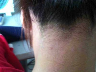1、脖子及附近刚出现神经性皮炎的时候,一般近表现有瘙痒,而没有明显的皮肤损害。常因病人搔抓等原因产生扁平丘疹,大小及形态不一,呈淡红色、褐色等,以后可见更多数量的丘疹,可相互融合成片,较终表现为苔藓样皮损。