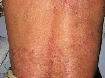 一、神经性皮炎初发时,仅有瘙痒感,而无原发皮损,由于搔抓及摩擦,皮肤逐渐出现粟粒至绿豆大小的扁平丘疹,圆形或多角形,坚硬而有光泽,呈淡红色或正常 皮色,散在分布。因有阵发性剧痒,患者经常搔抓,丘疹逐渐增多,日久则融合成片,肥厚、苔藓样变,表现为皮纹加深、皮嵴隆起,皮损变为暗褐色,干燥、有细 碎脱屑。斑片样皮损边界清楚,边缘可有小的扁平丘疹,散在而孤立。皮损斑片的数目不定,可单发或泛发周身,大小不等,形状不一。