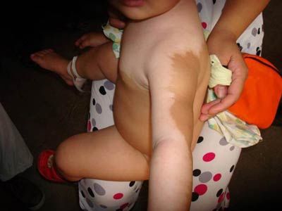 4、小孩继发性白癜风常常发生于湿疹冻疮时,另外在牛皮癣、盘状红斑狼疮、或神经性皮炎等炎症消退时也可能发生,一般表现为局部皮肤出现椭圆形或不规则的白斑。