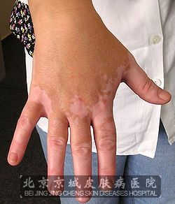 3、白癜风早期症状之三,白癜风的发病症状有一个过程,初期时候白斑的颜色浅,不会是明显的区别于正常皮肤的颜色,有有些色素脱失之外,发生白斑部位的皮肤和其他部位的正常皮肤没有区别,也不会有炎症、脱皮以及萎缩等等症状的发生。这样也导致大多数的患者基本不会注意自己身体上白斑的变化,这样也就错过了白癜风早期治疗的较佳时机。