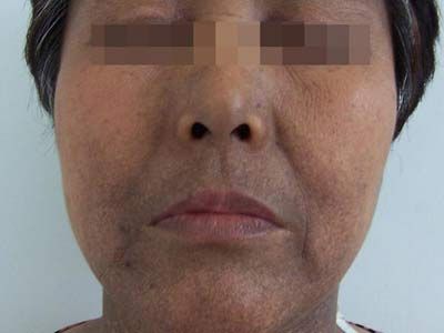 面颈毛囊性红斑黑变病是一个独特的侵犯毛囊的红斑性色素沉着病。此病多在青年人或中年男性中发病。在具有毛细血管扩张的红褐色色素沉着中,散布有浅色毛囊性丘疹。色素沉着由耳周可伸展到颈部。病情持久,治疗顽固。多数受损毛囊毳毛已丧失,但头皮或胡须部的毛发尚存留。