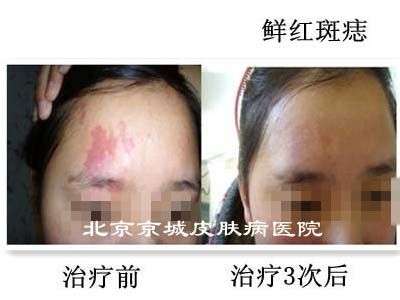 北京京城皮肤医院介绍,激光治疗红色胎记的效果是较好的,小丽从生下来额头上就长了一块红色胎记,当时没在意也是担心价格高就没去治疗,随着小丽的成长额头上的红色胎记也在增长,这急坏了小丽的家人,看到北京京城皮肤医院较新的活动,100公益基金来胎记患者,于是来到了医院,进行了治疗。>>>推荐阅读:胎记较佳治疗时间