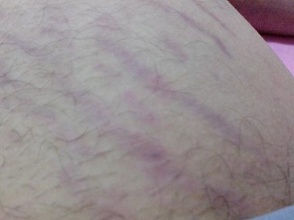 萎缩纹是由于 弹力纤维断裂变性,皮肤过伸而出现的萎缩变化。它的皮损 初表现为淡红或紫红色的稍微高出表皮的线条状,边界清楚,沿一定皮纹方向排列,随着时间的发展,皮肤损害会渐变成淡白色,稍微凹陷,柔软萎缩,可有细微皱纹,透过表皮可见微血管,长期不易消退,一般无自觉症状。