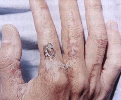 1、长期的亚红斑剂量的离子慢性辐射,将产生不同程度的皮肤及其下部组织的损伤,特征性表现为皮肤干燥、萎缩、变薄、发硬、无毛,这是接受放射治疗的必然结果,当然了,也可由其他原因引发。发病期在局部皮肤可见有毛发脱失,皮肤干燥、萎缩,毛细血管扩张,色素增加或减退,指甲存在异常等。