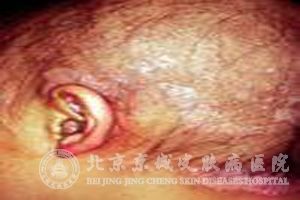 在放射性皮炎中有一种是由于x射线的照射而引起的皮炎,俗称“.X线红斑”。它的组织病理主要表现为 上部的血管出现扩张,并伴有一定程度的皮肤的内皮*肿胀及血管的通透性增加现象,也会有肥大的*脱颗粒剂轻度的非特异性血管周围*浸润,在这些*中,主要以淋巴*与多核性*为主。在红斑出现的初期,表皮、皮脂及毛发的增殖*群中,*的有丝分裂会受到相应的抑制,辐射并没有对*分化,角化及脱落产生影响。但是会导致皮肤表皮有一定程度的变薄倾向。在接触辐射二至三周时,在表皮上会有明显的黑色素色基沉着增加,同时黑色素*的数量也会有所增加。在治疗后,病变会随之消失,上皮增生恢复,其他的异常转变现象也会逆转。
