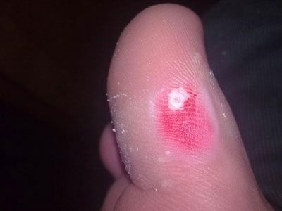 鸡眼,俗称“肉刺”,是由于局部皮肤长期抗体受到挤压摩擦而造成增生的角质层,形如圆锥体,嵌入皮内,尖顶突入 中,压迫神经末梢,局部一旦受压或受挤就会引起明显的疼痛。长久站立和行走的人较易发生,摩擦和压迫是主要诱因。圆锥的底在皮肤表面为一圆形,或椭圆形,淡黄色质硬的斑,境界清楚一般如黄豆大小。发生在足跖部的鸡眼,应与跖疣相鉴别,跖疣是病毒感染所致,常常多发。用小刀削去表面增厚的角质层,可见乳白色的角质软芯,其上有散在的小黑点,而鸡眼无此现象,跖疣挤痛明显。如果发现跖疣症状可以使用中药治疗,较好。鸡眼压痛明显又应与胼胝鉴别,后者范围较广,境界不清无圆锥形角质增生嵌入深部和痛感。