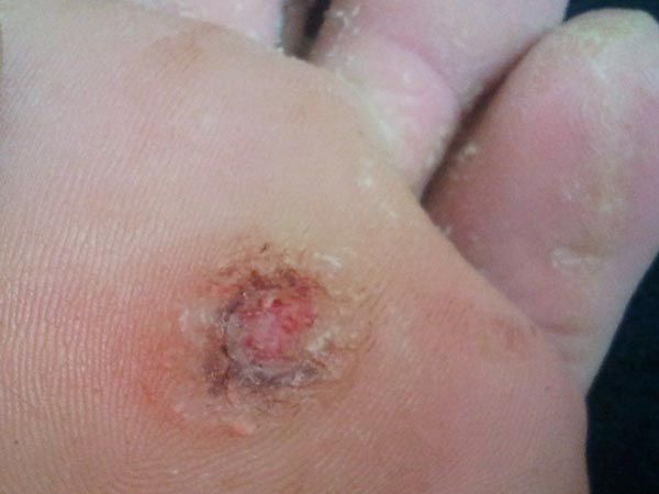 3、鸡眼有软硬之分,硬鸡眼好发于足底以及小趾外侧,趾背等骨突出或易受压摩擦处,圆或卵圆形。表面扁平,质硬,呈淡黄色,其头部可深达其皮的乳头层,在站立或行走时,往往因压迫乳头层的感觉神经末稍而引起剧痛。