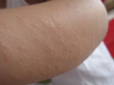 2、皮疹形态较为单一,一般为针头至米粒般大小,呈灰白色或淡红色,或接近于正常肤色,丘疹形状较多样,可有圆形、扁平或丘状隆起。