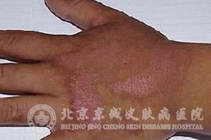 而二度晒伤的表现开始为皮肤红肿,接着会出现水疱或是大疱,通常疱壁张得较紧且内含有淡黄色的液体,患者会有灼痛或刺痒的感觉,在水疱破裂后就会形成糜烂面,接着逐渐干燥并且结痂,留下色素沉着或者色素减退。
