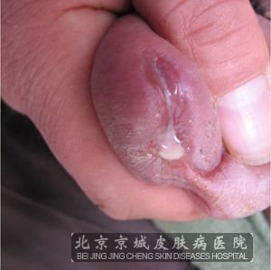 3、在上面的情况出现之后,病情就会越来越明显,具体的表现是排尿的时候有刺痛感,尿道口周围的浮肿情况也会持续下去,腹股沟的淋巴结也会出现肿大的情况。原本透明的粘性分泌物,会被淡黄色脓液所取代。