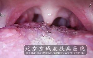 口腔尖锐湿疣多位于舌下系带处、舌两侧、咽喉处,咽喉处疣体较大的时候会有声音嘶哑、吞咽困难,咽喉不适的症状。