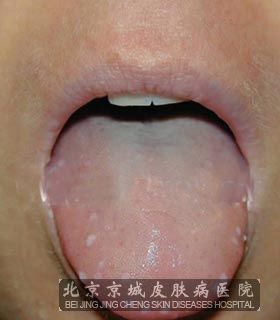 口腔尖锐湿疣在临床上也是比较多见的,以青中年男女性居多,其病变部位多发生在舌系带及其附近,皮疹隆起呈乳头状、菜花状、鸡冠状或鹅卵石样外观,绿豆至蚕豆大小,边界清楚,数目1~ 10个不等。皮疹颜色多呈淡红色或鲜红色,触之易出血。显微镜下,可见表皮呈弥漫性角化不全,并呈乳头瘤样增生,棘明显肥厚,可见空泡, 浅部毛细血管扩张及慢性炎症*浸润。