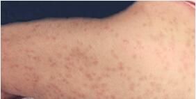 二期梅毒;梅毒螺旋体经淋巴系统播散。继之进入血渡循环,并附着于皮肤粘膜的微细小血管上,因其毒素作用,引起皮肤粘膜发疹,即二期梅毒疹。主要表现为分批出现新生和陈旧性皮疹,呈泛发和对称性分布。皮疹有多种形态,可有斑状梅毒疹,丘疹性梅毒疹、脓疱性梅毒疹、掌跖梅毒疹及特殊型梅毒疹,后者如扁平湿疹、梅毒白魔、色素性梅毒疹、银屑病梅毒疹、梅毒性甲病及梅毒性脱发。