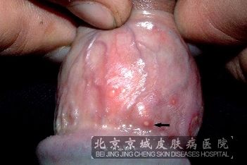 北京京城皮肤医院指出,男性生殖疱疹的症状:原发损害是1个或多个小而瘙痒的红丘疹,迅速变成小水疱,3~5天后可形成脓疱,破溃后形成糜烂、溃疡、结痂,伴有疼痛。皮损单发或融合,男性好发于龟头、冠状沟、阴茎体或尿道口。