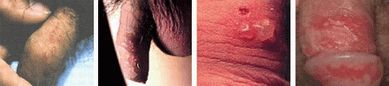 1. 初发阶段:在感染得第四天会有红色丘疹,密集成堆地出现在龟头,阴唇,包皮,子宫颈等处;