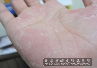 问:前些天突然起了很多突起状的小疙瘩,手掌变的很红,痘痘退下后就开始蜕皮,请问这是怎么回事啊?
