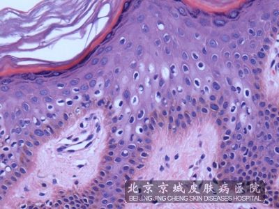 北京京城皮肤医院介绍说:汗孔角化症的病理改变主要表现为表皮性凹窝中有角化不全柱,而且角化不全柱下方无颗粒层,有角化不良*,这些柱之间表皮可正常、萎缩或增生,有些 浅层以淋巴*为主的炎性浸润以及胶原纤维与附属器萎缩的病理改变等。