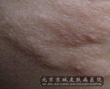北京京城皮肤医院介绍说:在结节硬化症的损害图片中,我们可以看到患处的皮损看起来像是湿疹一样,而且略高出皮表,损害为淡粉色的丘疹。还会有色素脱失斑为叶形卵圆形或不规则形白斑,主要出现在患者的躯干及上下肢等部位。