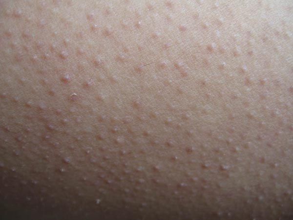介绍,毛囊角化症常常发生在手部与腿部外侧,偶尔也出现臀部、背部等。由于毛囊皮脂腺毛囊角化症开口处有角化现象,所以形成了角栓,角栓硬化后会导致毛孔封闭。本病的外观与鸡皮疙瘩相似,但是鸡皮疙瘩是一种暂时性的皮肤变化,会随着气候或者情绪的产生而收缩。而毛囊角化症是长期性皮肤病,如果不治不影响终身。