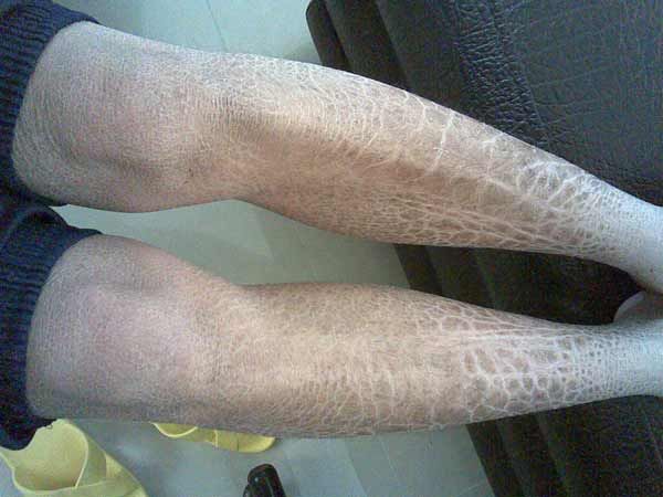 通过对患者角化过度鱼鳞病图片查看,我们可以看出这种病变主要有如下几点: