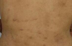 回旋形线状鱼鳞病也叫做Netherton综合征,它是一种常染色体隐性遗传病,其发病机制目前还不清楚。回旋形线状鱼鳞病一般在出生时或生后不久即可出现,其症状是皮肤出现泛发性游走性环状或多环状红斑及鳞屑周边有明显的“双边”鳞屑,具有特异性。泛发性红斑及干燥纤细的鳞屑就像银屑病。躯干和四肢近端的皮疹可出现多形匐形性损害,原有老皮损消退后,在其他部位还可出现新的环状损害,而且一般不留萎缩、瘢痕或色素沉着,其损害在青春期可减轻,但是很少自动消失。可有患者伴有毛发异常,毛发短、脆、无光泽,眉毛、睫毛稀疏或缺乏牙齿等症状,甲可正常。