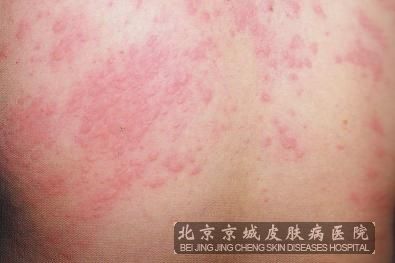 北京京城皮肤医院指出,荨麻疹的症状:迅速出现风疹块(风团),在风疹块出现前几分钟,局部常发痒或有麻刺感。有的病人在风疹块出现数小时或一两天内有些全身症状如食欲不好,全身不适,头痛或发热。