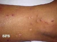 北京京城皮肤医院指出,荨麻疹性皮肤的症状:亚急性荨麻疹,为急性炎症减轻后,皮疹以小丘疹、鳞屑和结痂为主,仅有少量的丘疱疹、水疱及糜烂。皮损较为局限,瘙痒仍较剧烈。