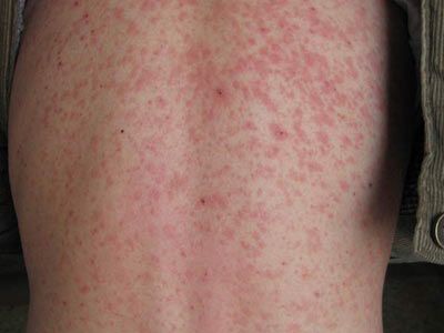 2.湿疹型荨麻疹:也是如荨麻疹型药疹一样,经常服用青霉素、链霉素、磺胺类等药物会引发接触性皮炎,令皮肤更加敏感。通常这类药疹表现为大小不一的红斑、丘疹、丘疱疹以及水疱,随着病情的发展,这些丘疹或者是水疱会融合成片,继而扩散至全身,并且引发糜烂、渗出、脱屑等症状。