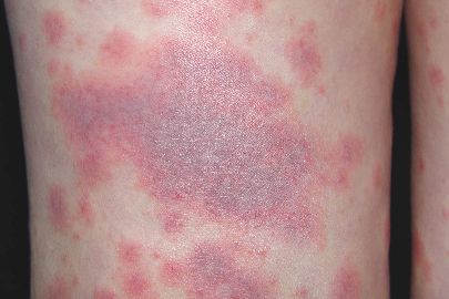 通过重症多形红斑型药疹症状图片,可以看出初有发热及流感样症状,经过l—14天突然起病:粘膜损害常为 症状,或与躯干皮损同时出现,且症状严重。多发生两处以上,较常累及唇红、口腔和眼结膜,其次为生殖器部位。形成糜烂、渗血、黑褐色血痂,疼痛明显。