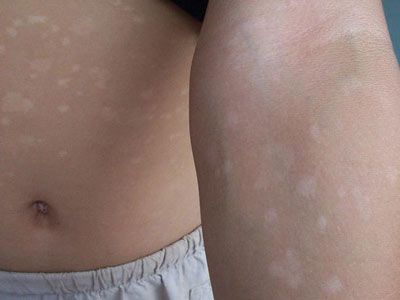 2、花斑癣影响个人形象:花斑癣好发于多汗部位,如胸部、腹部、上臂、背部和颈部,有时也可波及面部,可形成色素脱失的斑点,不容易消退。