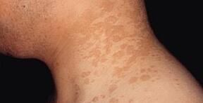 花斑癣早期症状表现为:初起损害为围绕毛孔的圆形点状斑疹,以后逐渐增至甲盖大小,边缘清楚,邻近损在可相互融合成不规则大片形,而周围又有新的斑疹出现。表面附有少量易剥离的糠秕样鳞屑,灰色、褐色至黄棕色不等,有时多种颜色共存,状如花斑。时间较久的呈浅色斑。皮疹无炎性反应,偶有轻度瘙痒感,皮损好发生于胸背部,也可累及颈、面、腋、腹、肩及上臂等处,一般以青壮年男性多见。病程慢性,冬季皮疹减少或消失,但夏天又可复发。