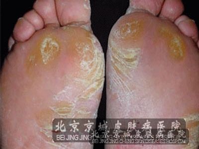 【脚气症状二】:糜烂型脚气,这种类型好发于脚部部位,由于脚部在走动时摩擦而形成糜烂面,如果不及时治疗就很容易导致脚部都会出现脚气,瘙痒难忍。糜烂型脚气很容易出现在脚部出汗的人中。
