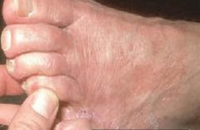 第二点:脚部皮肤有很厚的角质层,如果脚部容易出汗,那么,这些角质层就会在汗水的浸渍下,变成适合真菌生存的营养来源,一旦感染到真菌,就可能会增加真菌的生存和繁殖,导致脚气的出现。生活中穿不透气的鞋子也会造成一个适合真菌生存的环境,因此,生活中要穿透气性良好的鞋子。