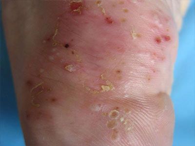 3.水泡型脚气四季均可发病,多发于夏季,出现这种类型的脚气之后,会有水疱的出现疱液呈现黄白色,如果患者搔抓,就可能会继发感染。当疱液干涸后,剥去皮屑就会出门潮红的糜烂面,有时候也会造成皮肤粗糙。