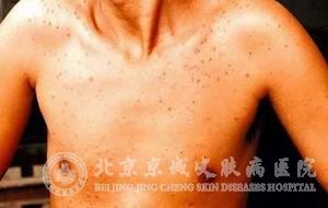 北京京城皮肤医院指出,马拉色菌病的症状主要表现在30岁左右中青年身上,在前胸、前臂、小腿、面部、颈部、背部、双肩等部位出现了毛囊性小脓疱或者小粟粒大暗红色丘疹。并且有瘙痒感和刺痛感,个别患者会与花斑癣并存。