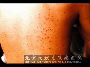 秕糠孢子菌病用什么药治疗?北京京城皮肤医院皮肤病专家说秕糠孢子菌病出现在青壮年的胸背、上臂上,在胸背、上臂上会有脓疱样损害或者圆顶状毛囊性丘疹,如果无法确定为秕糠孢子菌病,可以进行镜检,观察是否出现短杆状菌丝、圆形孢子。