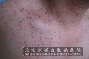 糠秕孢子菌毛囊炎是由圆形或卵圆形糠秕孢子菌感染而引起的一种毛囊炎改变,其典型的皮损表现为圆顶状毛囊性丘疹或脓疱样损害。由于糠秕马拉色菌是人体皮肤正常菌群之一,它只有在某些促发因素的影响下,才会在毛囊内大量繁殖。糠秕孢子菌毛囊炎的发病机制为其脂肪分解酶可以使毛囊的甘油三酯变成游离脂肪酸,刺激毛囊口产生大量的脱屑,使毛囊导管阻塞。而糠秕孢子菌的过度繁殖,皮脂的潴留,*碎片的积聚和游离脂肪酸的刺激,可导致阻塞的毛囊扩张,继而发生破裂,内容物释入组织而引起炎症反应,从而导致糠秕孢子菌毛囊炎发病。