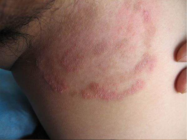 (2)、股癣较主要的症状就是瘙痒剧烈,股癣在刚刚开始时,主要表现为一些小小的红斑片,这些红斑片会逐渐转变为和皮肤颜色一样的颜色。皮损的中心也会随着病情时间的加长而变成环形或者是半环形。如果不及时治疗,还可能会继发感染,引发一系列的并发症。