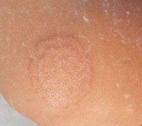 (2)病损的中心渐渐自动愈合,向周围发展,红斑的边缘炎症比较明显,上面可有皮疹、水疱、痂皮,甚至糜烂,形成环形。