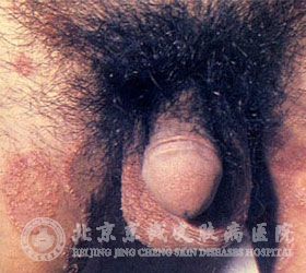 (3)银屑病:俗称牛皮癣,可侵犯股部,表现为环状或斑块状红斑,一般表面有较厚的鳞屑,全身其他部位也可有同样的皮疹。