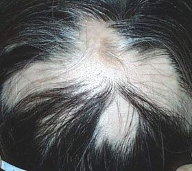 一般治疗——用酸性洗发液洗发,以保护头皮,常 吃碱性蔬果少吃盐,适当减少脑力劳动。